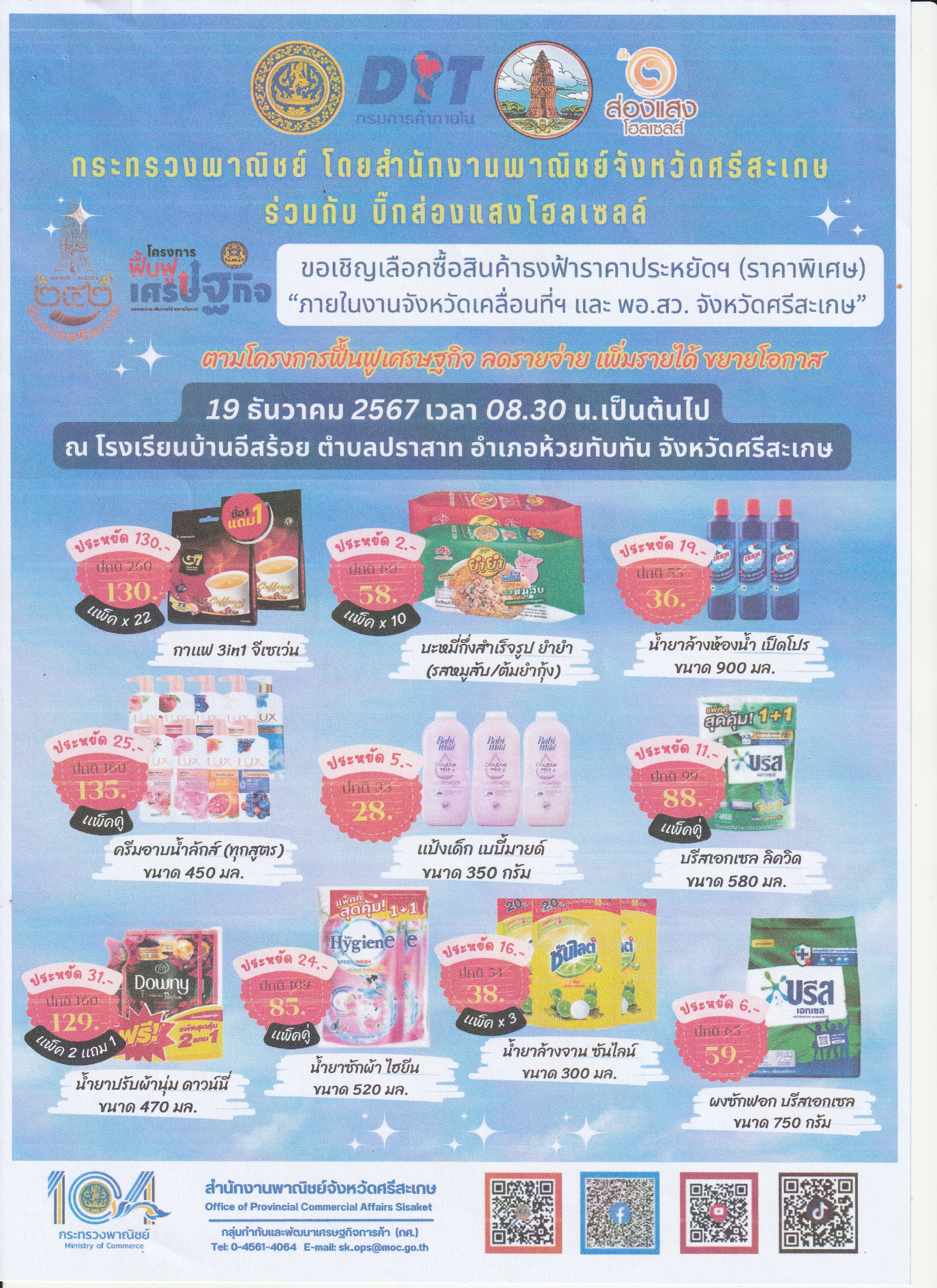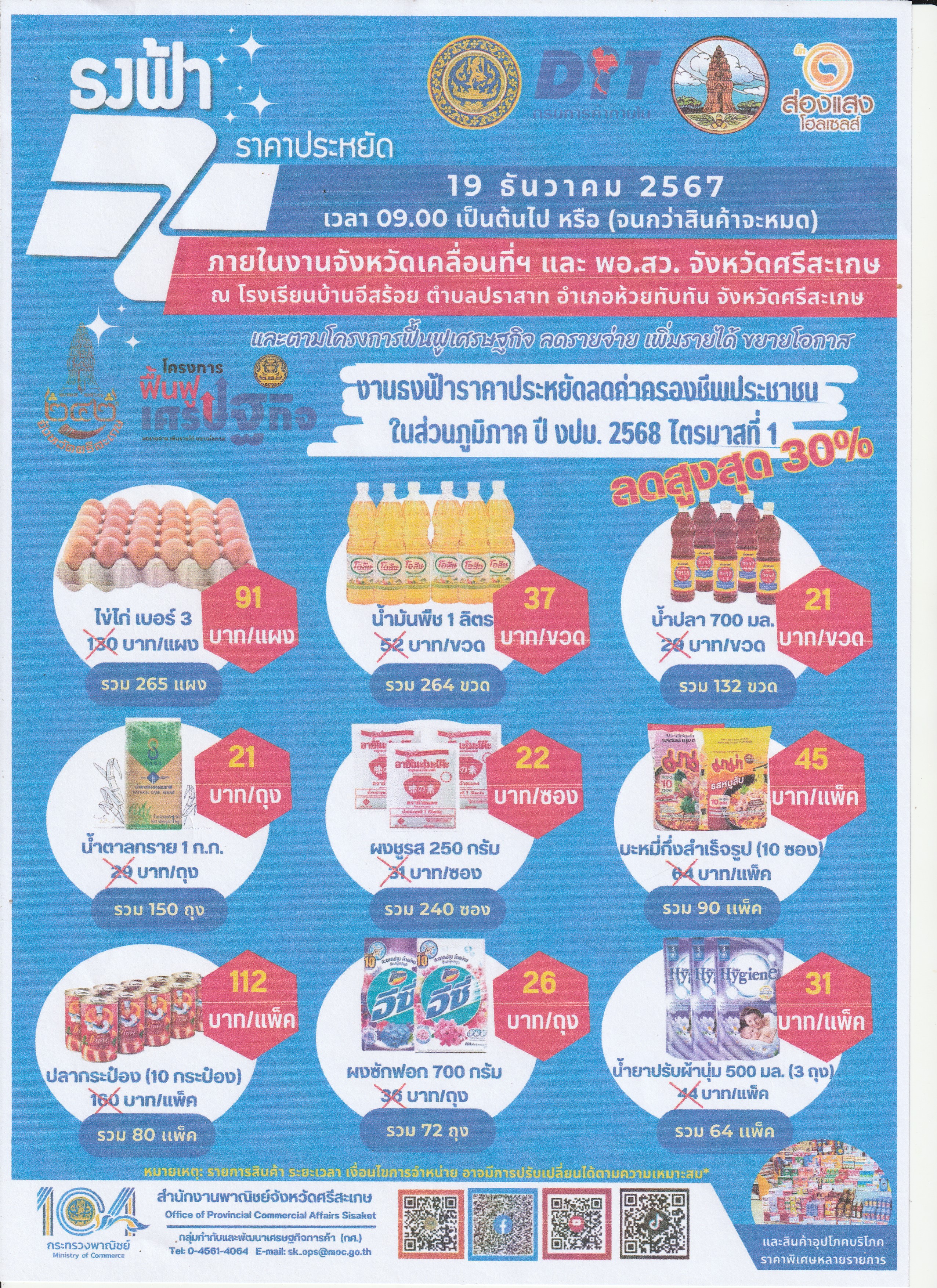 ขอเชิญเลือกซื้อสินค้าธงฟ้าราคาประหยัดฯราคาพิเศษ ภายในงานจังหวัดเคลื่อนที่ฯ และ พอ.สว.จังหวัดศรีสะเกษ